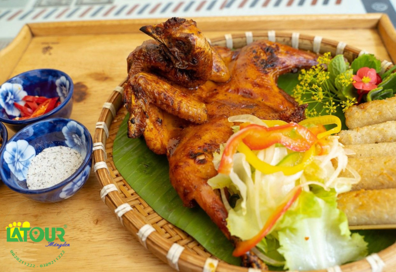 | Gà nướng Măng Đen | Thịt gà thả rông ngọt đậm, da giòn, ướp gia vị rừng đặc trưng. |
