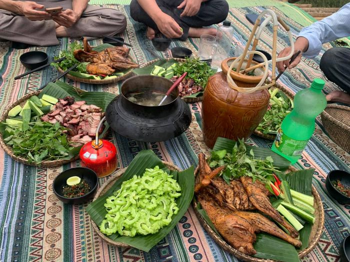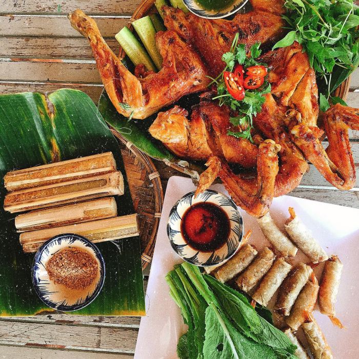 - Đặc điểm: Mang đến trải nghiệm ẩm thực kết hợp tham quan thiên nhiên độc đáo. Món gà nướng cơm lam tại đây được nhiều “dân sành ăn” yêu thích bởi hương vị đặc trưng và không gian thưởng thức lãng mạn.