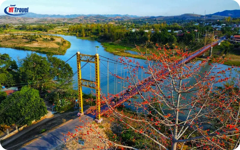Về mặt du lịch, Cầu Treo Kon Klor nằm trong tuyến tham quan hấp dẫn các điểm văn hóa và thiên nhiên đặc sắc của tỉnh Kon Tum cũ. Từ đây, du khách có thể dễ dàng di chuyển đến thăm các nhà rông truyền thống, thưởng thức ẩm thực địa phương, hay tìm hiểu về phong tục tập quán của các dân tộc thiểu số. Đặc biệt, cây cầu còn là điểm khởi đầu lý tưởng cho những chuyến trekking khám phá các bản làng xung quanh, nơi bạn có thể hòa mình vào thiên nhiên hoang sơ và trải nghiệm cuộc sống chân thực của người dân bản địa. Tản bộ trên cầu, du khách sẽ được tận hưởng làn gió mát lành từ sông Dak Bla, ngắm nhìn khung cảnh hùng vĩ của núi rừng Tây Nguyên và ghi lại những khoảnh khắc đáng nhớ với phông nền cầu vàng cam rực rỡ. Vẻ đẹp của Cầu Treo Kon Klor, cùng với sự thân thiện mến khách của người dân Kon Tum, chắc chắn sẽ mang lại cho bạn một hành trình khám phá đầy ý nghĩa và khó quên.