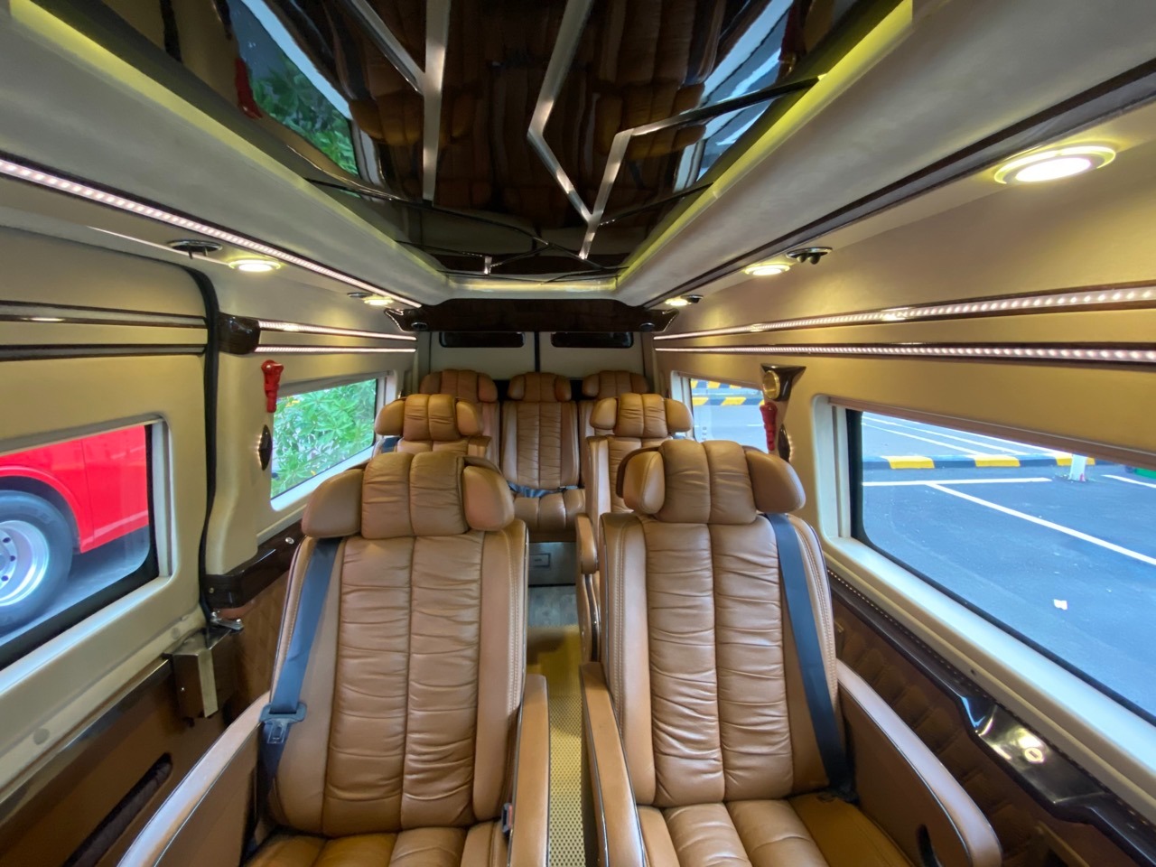 - Nội thất cao cấp: Xe được trang bị nội thất da, ghế có thể ngả, tích hợp wifi tốc độ cao, tủ lạnh mini, màn hình LCD giải trí cùng hệ thống an toàn hàng đầu.